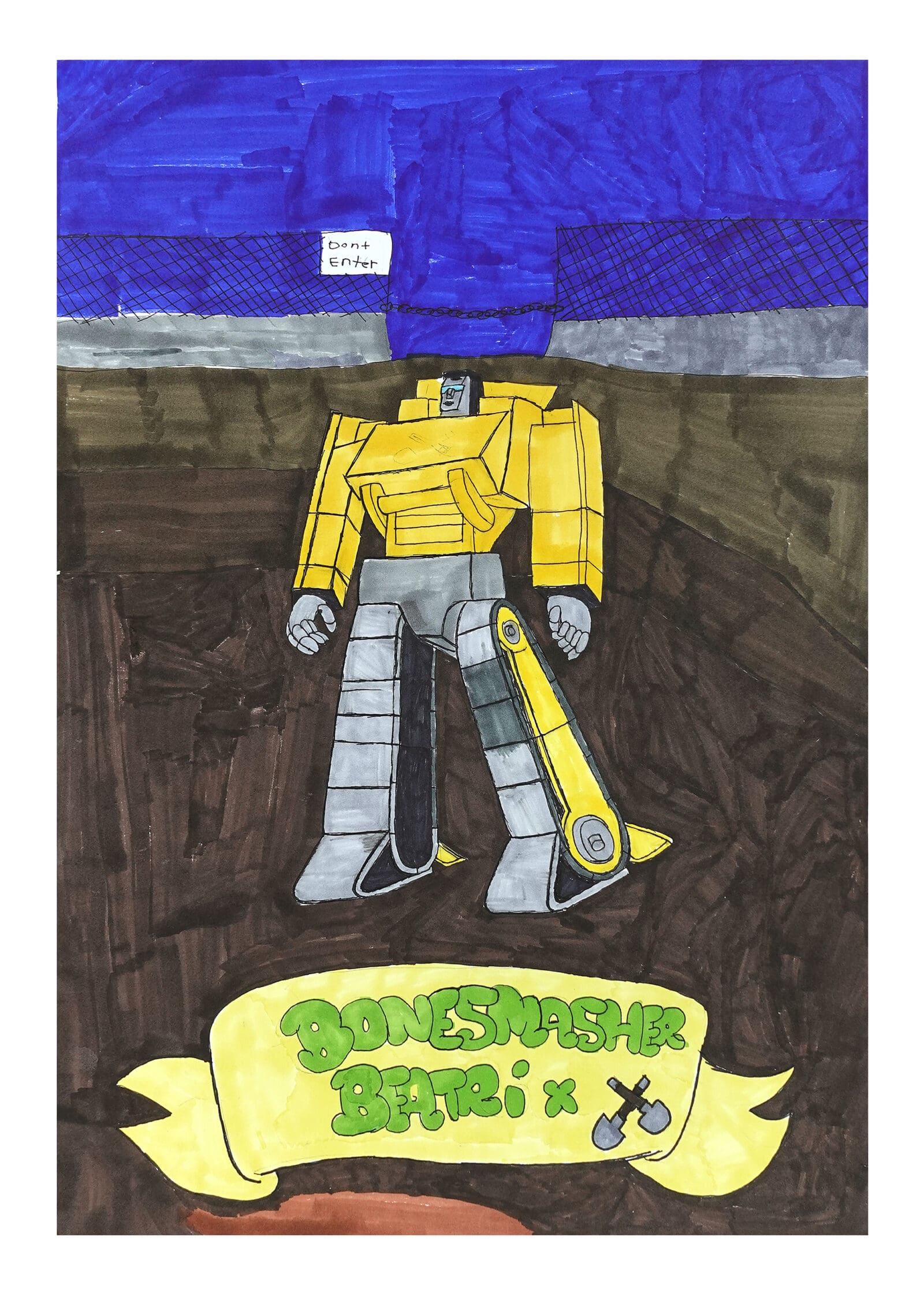 Using markers, micron pens, and the occasional colored pencil, he has built a wonderful, wacky world of intriguing scenes and personalities.