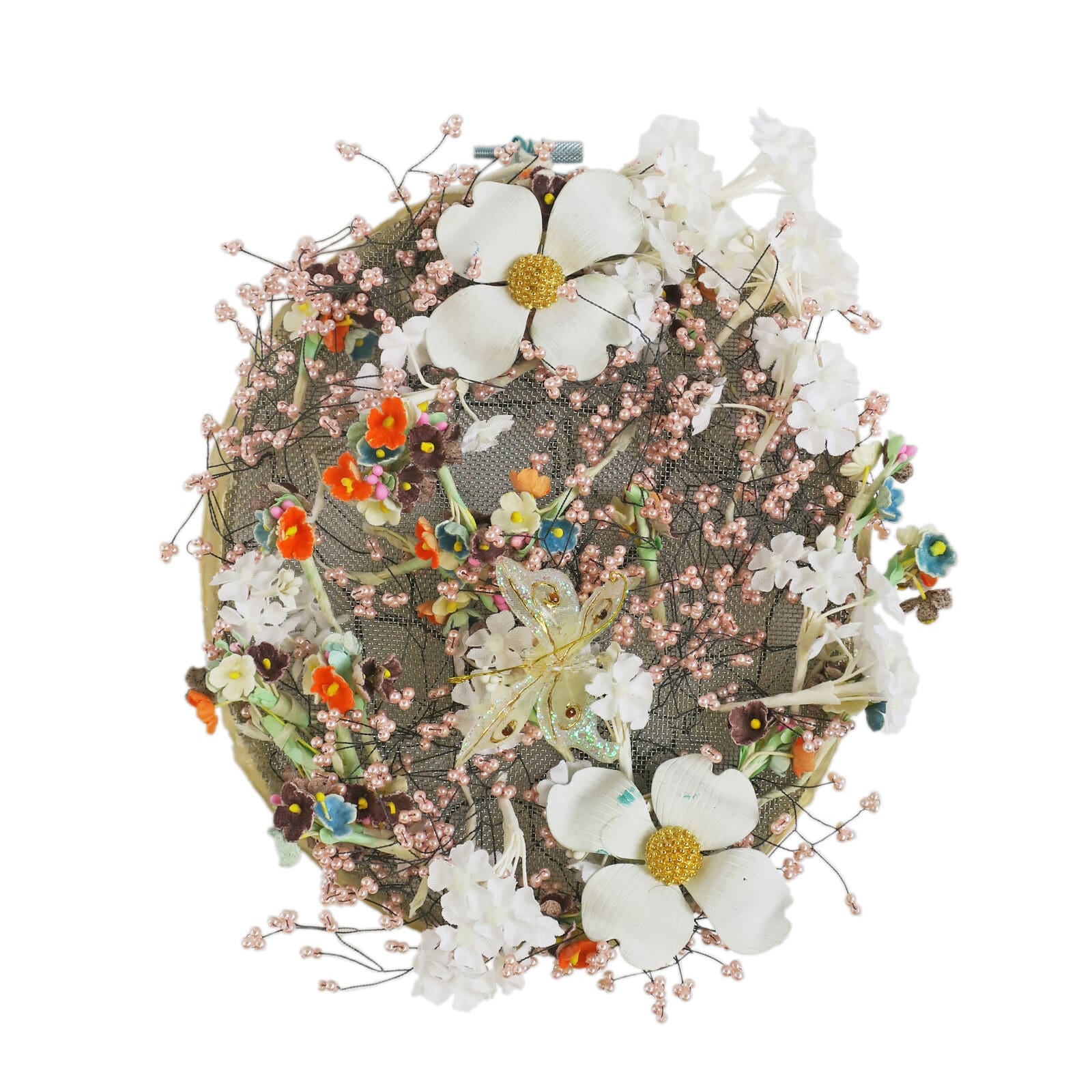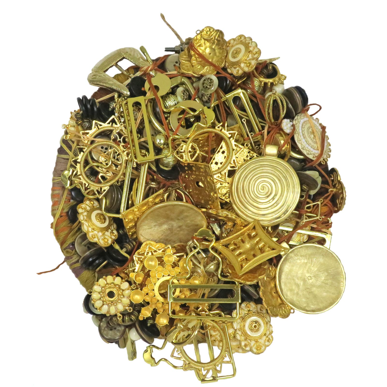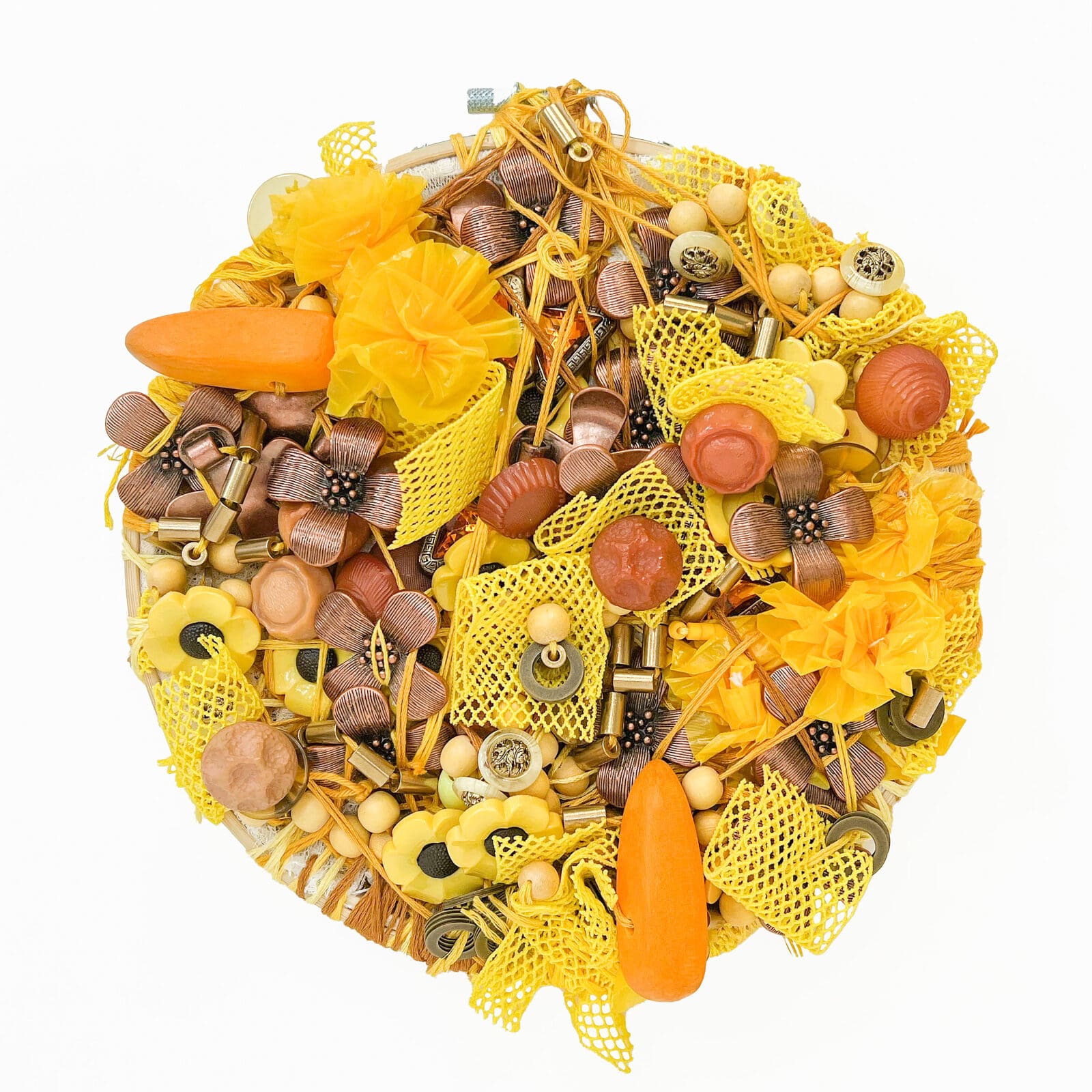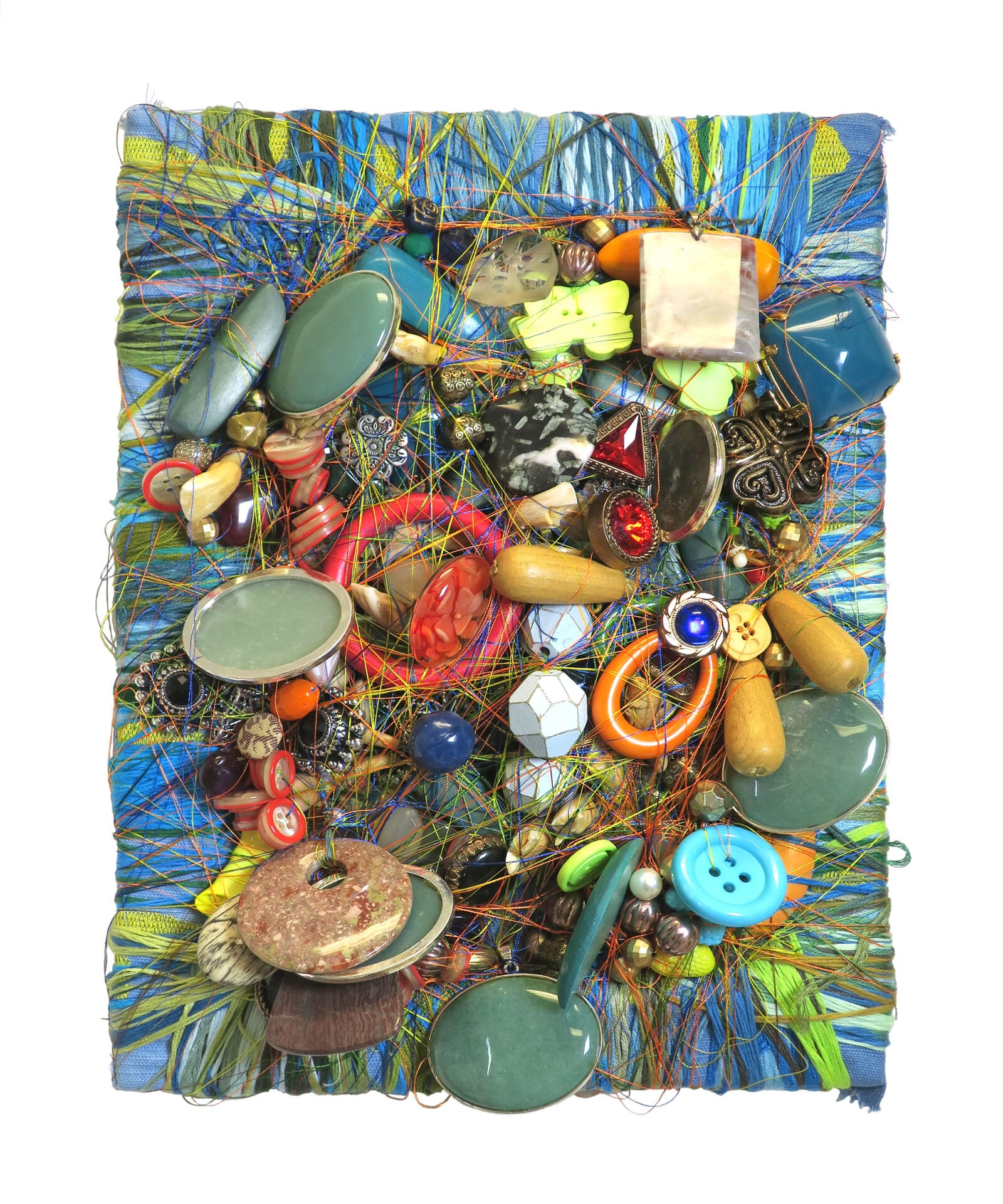 Most recently, she has focused on the creation of textile projects consisting of embroidered found objects, fabrics, and beads that she selects by size, shape, and texture. In addition to that, she creates sculptures by stringing donated beads and buttons into wires and pipe cleaners that are malleable and organic in shape.