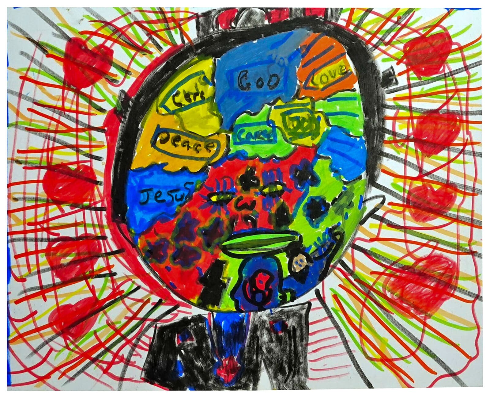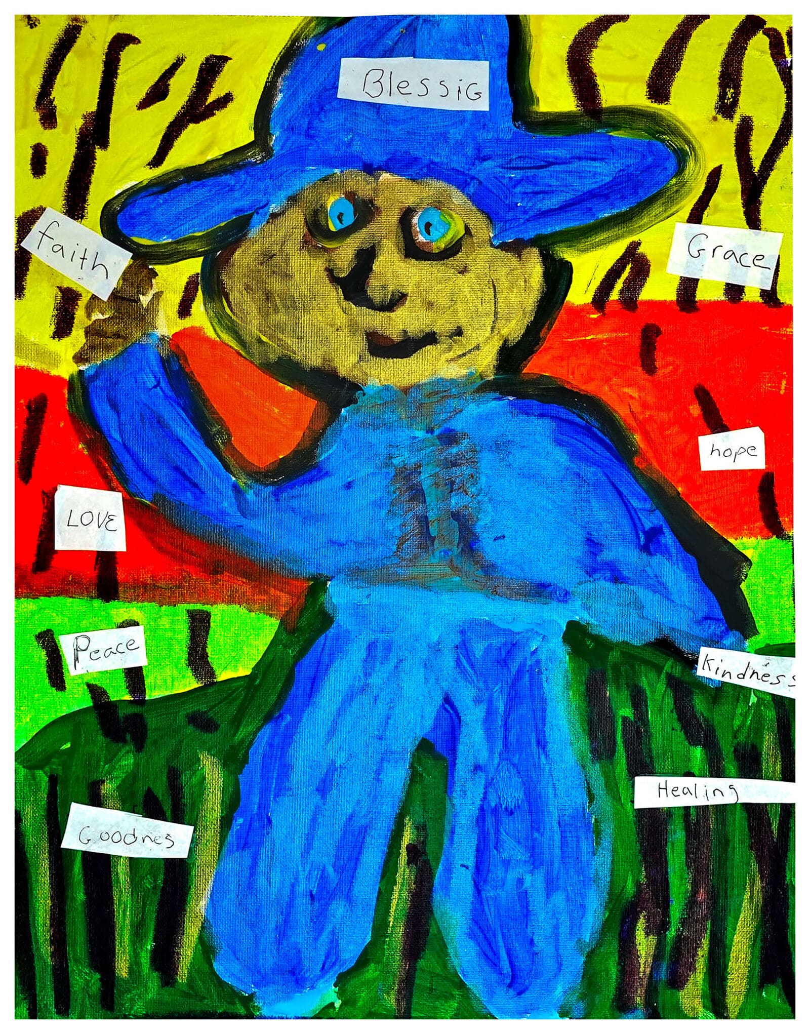 Both her artwork and her poetry are inspired by religion and her unique outlook on life. Sometimes her poetry stands on its own, however it is often incorporated into her art, be it embroidering the verses onto fabric or letting her them inspire her paintings and drawings.
